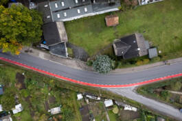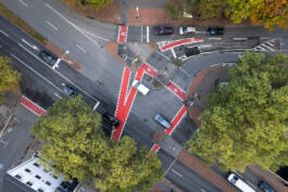 Drohnenfotos / Rot markierte Radwege sollen die Sicherheit für Fahrradfahrer erhöhen.