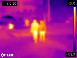 Konzeptfotografie mit einer Wärmebildkamera / Visualisierung der Unsicherheiten im Umgang mit Covid-19 zu Beginn der Pandemie im Frühjahr 2020 mit Hilfe von Körpertemperatur.